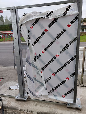 Pitkän pohdinnan jälkeen jossa myös paikallista palomestaria haastateltiin, päädyttiin tilaamaan Hammerglass ratkaisu.